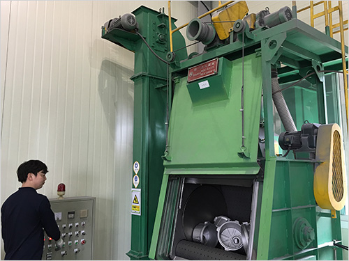 게이트 부위와 압탕부위의 절단과 연마 Apron shot blast M/C 표면 임가공 ->불순물 제거