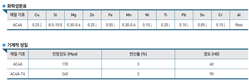 사면이 막혀 있는 제품의 경우, 용탕 주입후 냉각시 내부에서 발생되는 많은 RASIN GAS로 인해 내부 형상 성형에 어려움이 크지만, 영진기연은 자체 기술력으로 내부에서 발생하는 가스를 금형 밖으로 토출 시키는 방법을 개발하여 매끄러운 내부형상의 제품 주조가 가능합니다.