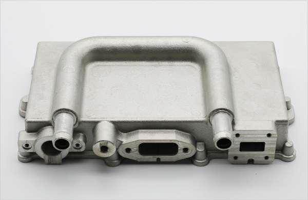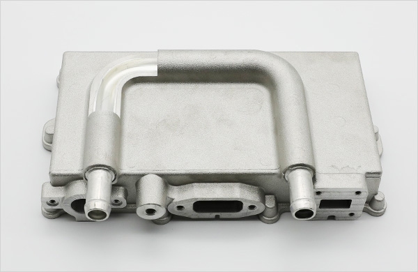 알루미늄 주조품 내부에 유로부 형성을 위하여 AL PIPE를 삽입하여 주조 합니다. 영진기연은 중자를 사용하지 않고 PIPE를 사용하여 기포 발생을 억제하고 유로부 세척 공정에 용이 하여 실질 원가를 절감하였으며, 리크 검사 시 불량이 발생하지 않아 가격경쟁력과 품질 양측면에서 혁신을 실현 하였습니다.